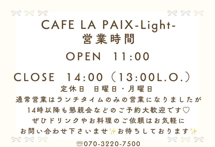 10:00~18:00(LO17:00)※ランチは11:00~14:00、カフェは14:00~18:00(LO17:00)